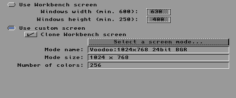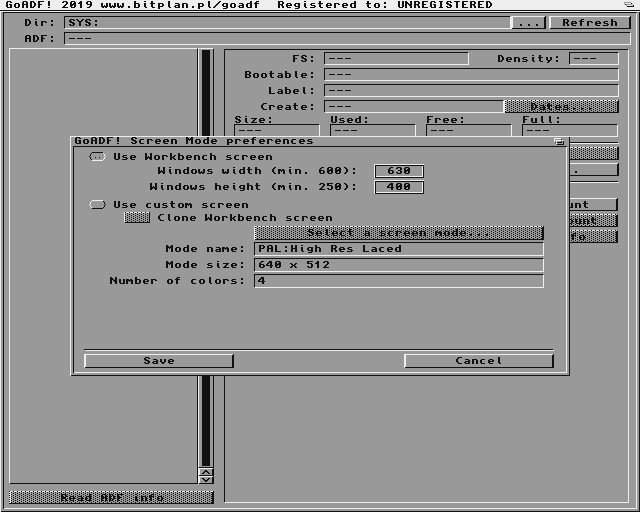 With that done I launched GoADF. You get the option to launch it in it's own screen (default) or choose to run it on the workbench screen. Initially I went with the default separate screen: