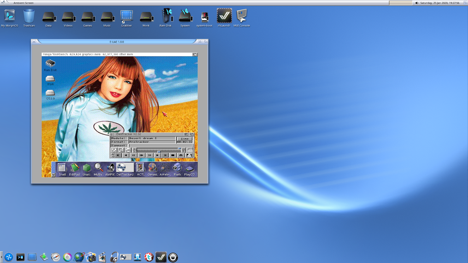 Running on the MorphOS 3.12 Ambient desktop, the A1200/040 emulated system runs very well: