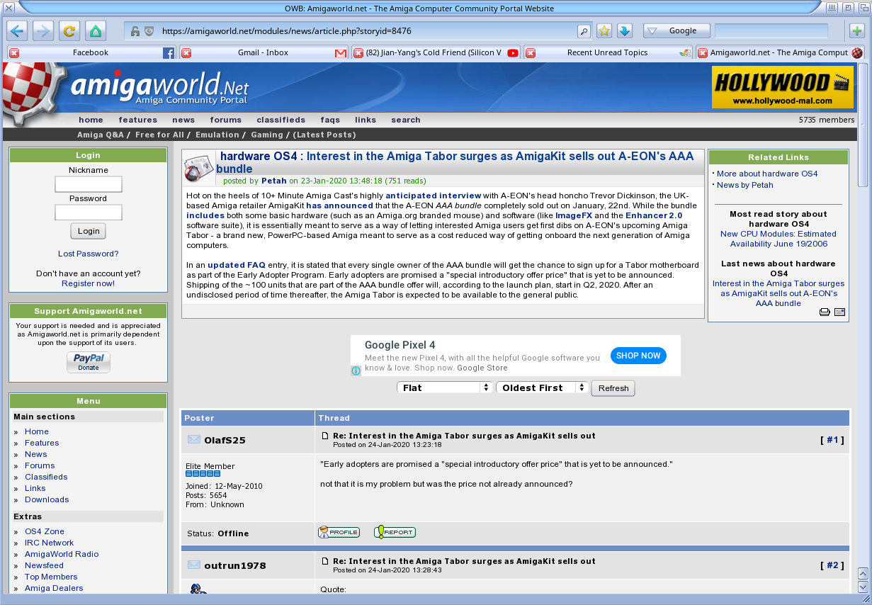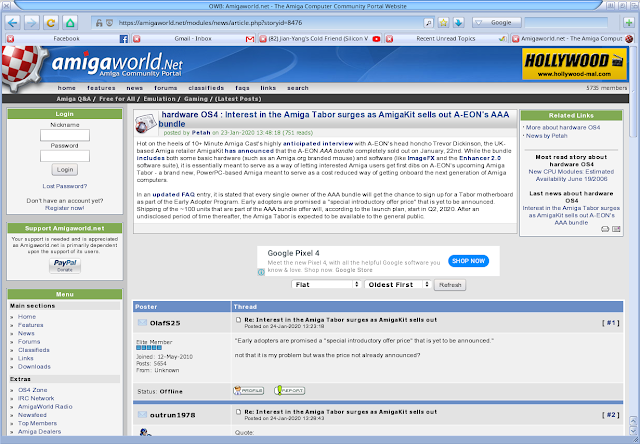 I hope all the remaining Amiga browser developers can unify their efforts under Odyssey and make it work with modern web applications and standards, really needed in 2020!