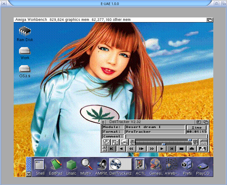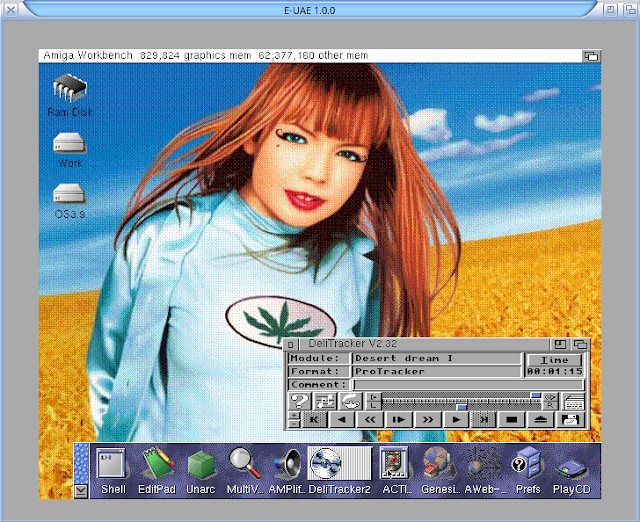Feeling a bit ambitious to test the limits, I ran three E-UAE sessions simultaneously on the X5000 on the MorphOS Ambient Desktop: