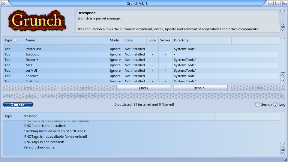 With the Chrysalis pack now installed on my X5000, I can next use Grunch to check for any updates of programs installed on my MorphOS 3.12 system: