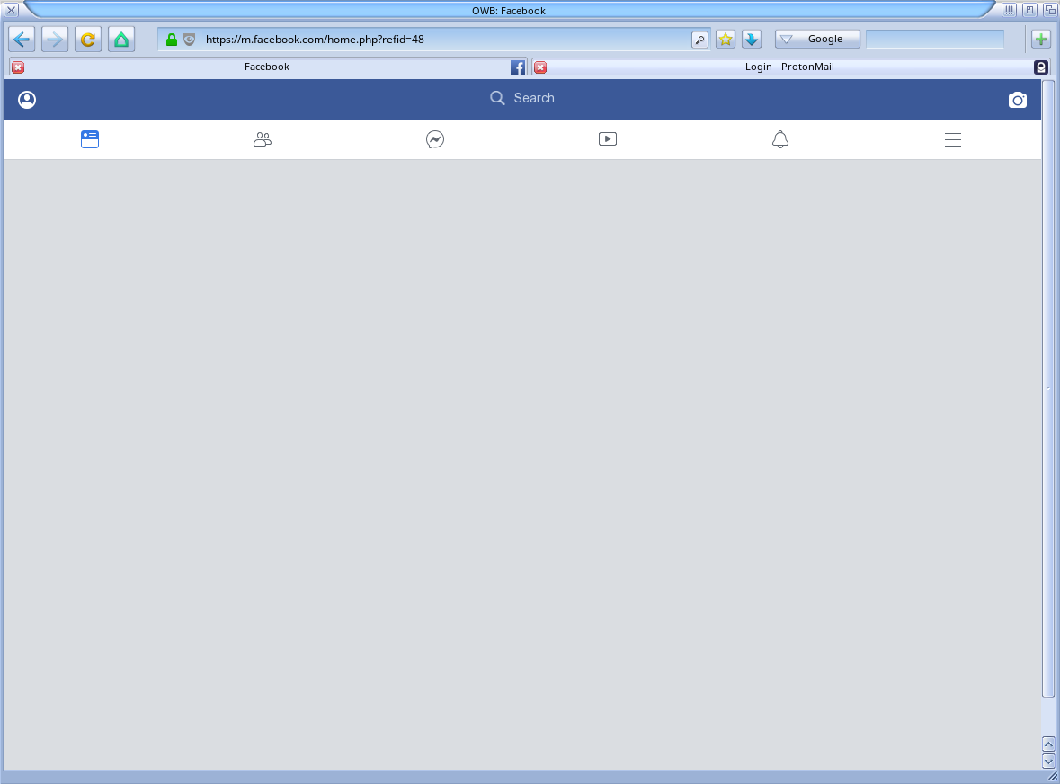 Accessing Facebook, I found it logged in ok, but the main page didn't display right - it was missing the content! I could see Odyssey was spoofing itself as an iPad from the way the Facebook screen was displayed: