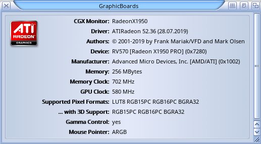 Here is some more information about the GFX card I have installed on the X5000, courtesy of the Graphics Board program under MorphOS: