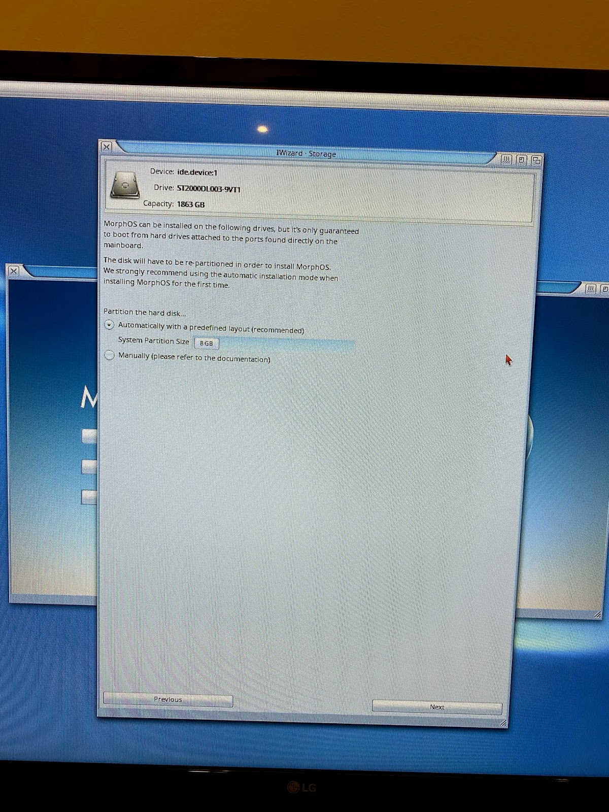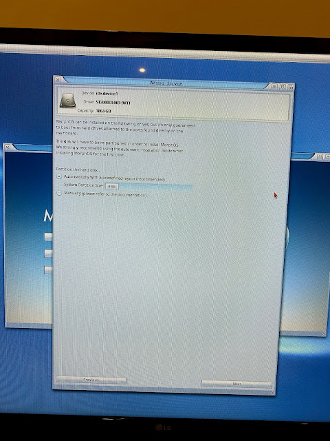 So I got on with the installation of MorphOS on the X5000 2TB hard disk: