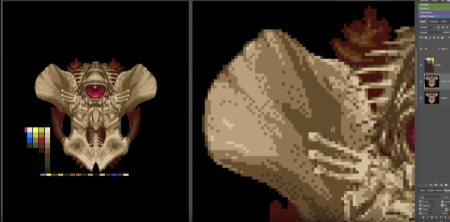 Using the Mac/PC in a similar way to Dpaint on the AMIGA.  That is creating a split zoom screen so you can see a nice zoomed pixelated window and a 100% window.