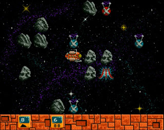 Around early August "Atarenium Falcon" by Last Minute Creations popped up, as an in-development game demo. Obviously a direct ZX81 port, written in 8086 assembler, under the influence of Iron Maiden. The medium is the message here - it's an Amiga game.