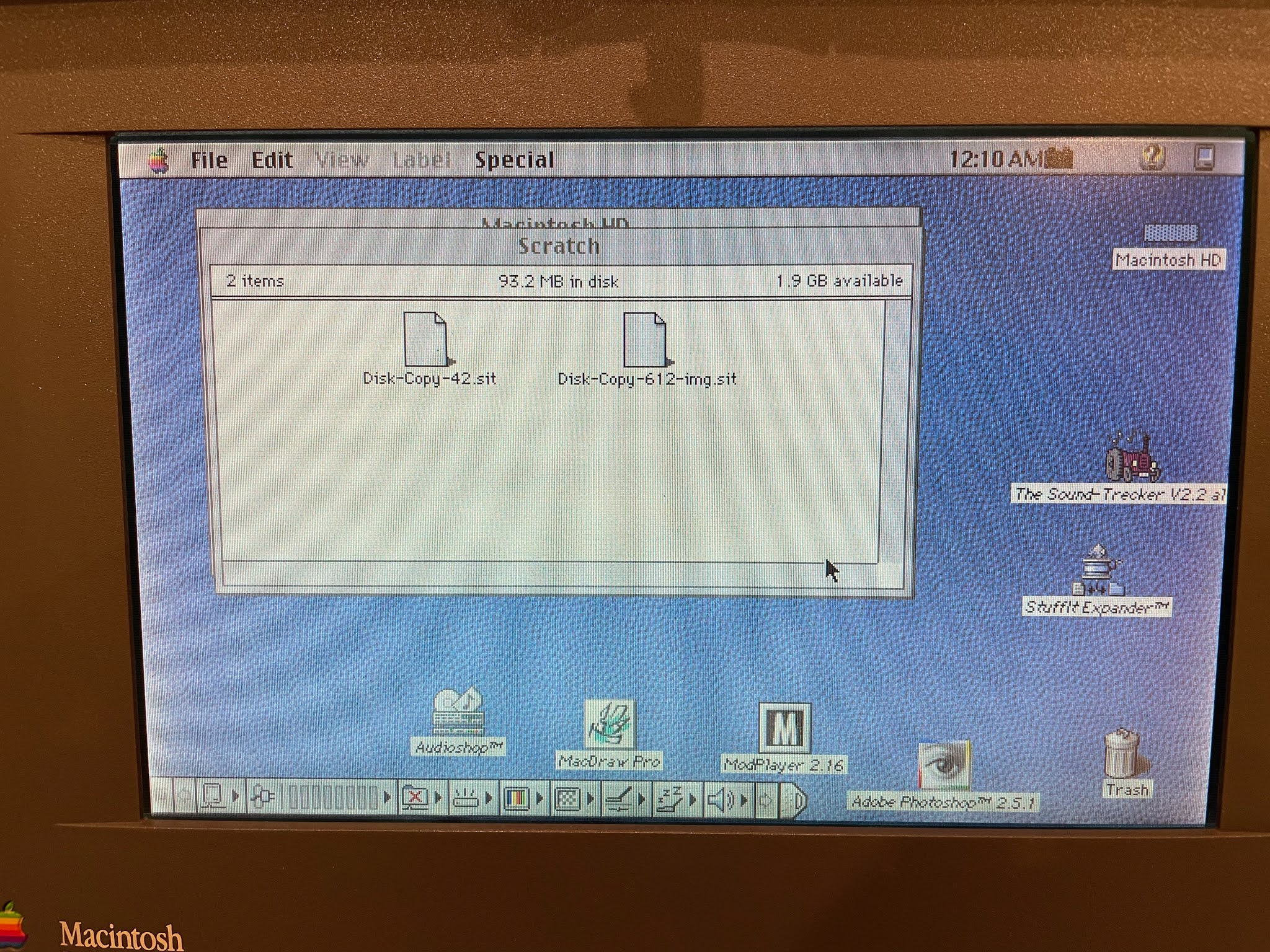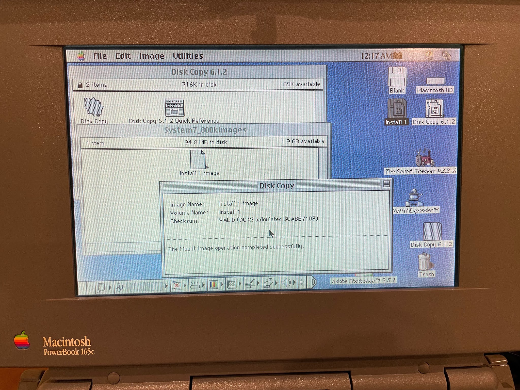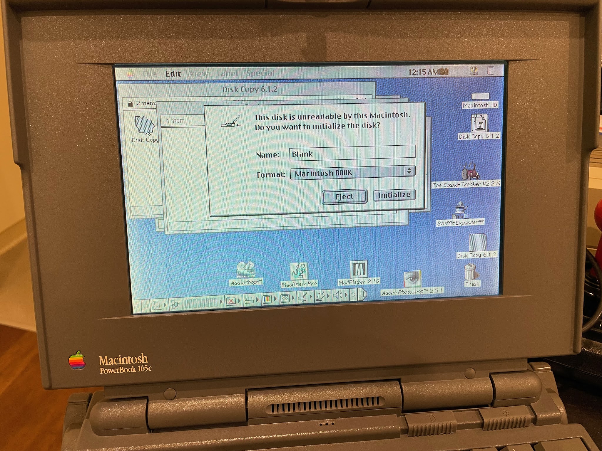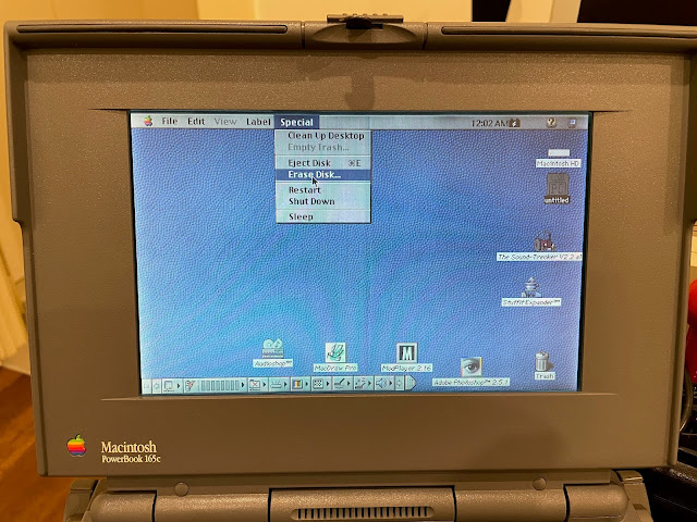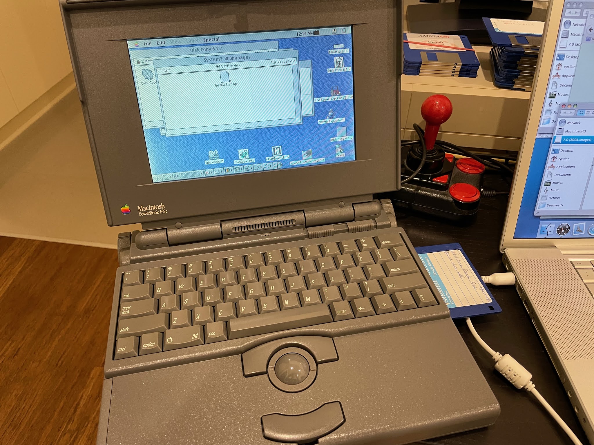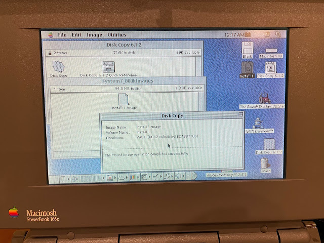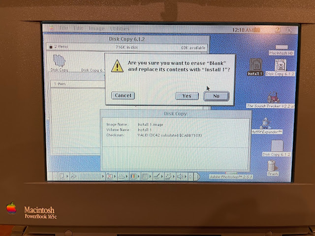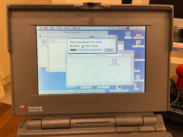 Naturally, this is where I hit a snag. I didn't have a system disk. Or any 800k Mac disks for that matter. The powerbook 165c uses 1.44MB floppy disks for its Mac system disks.