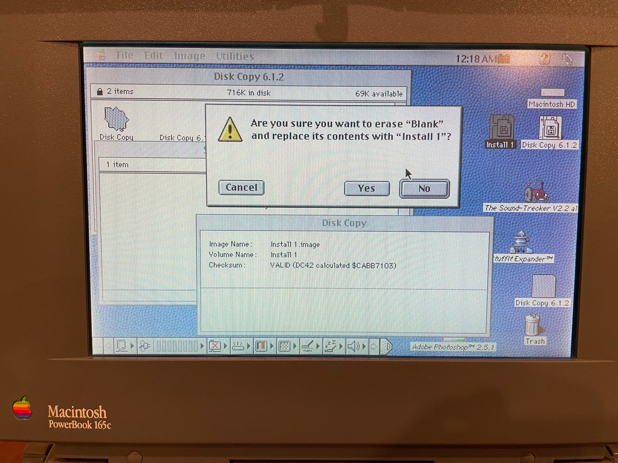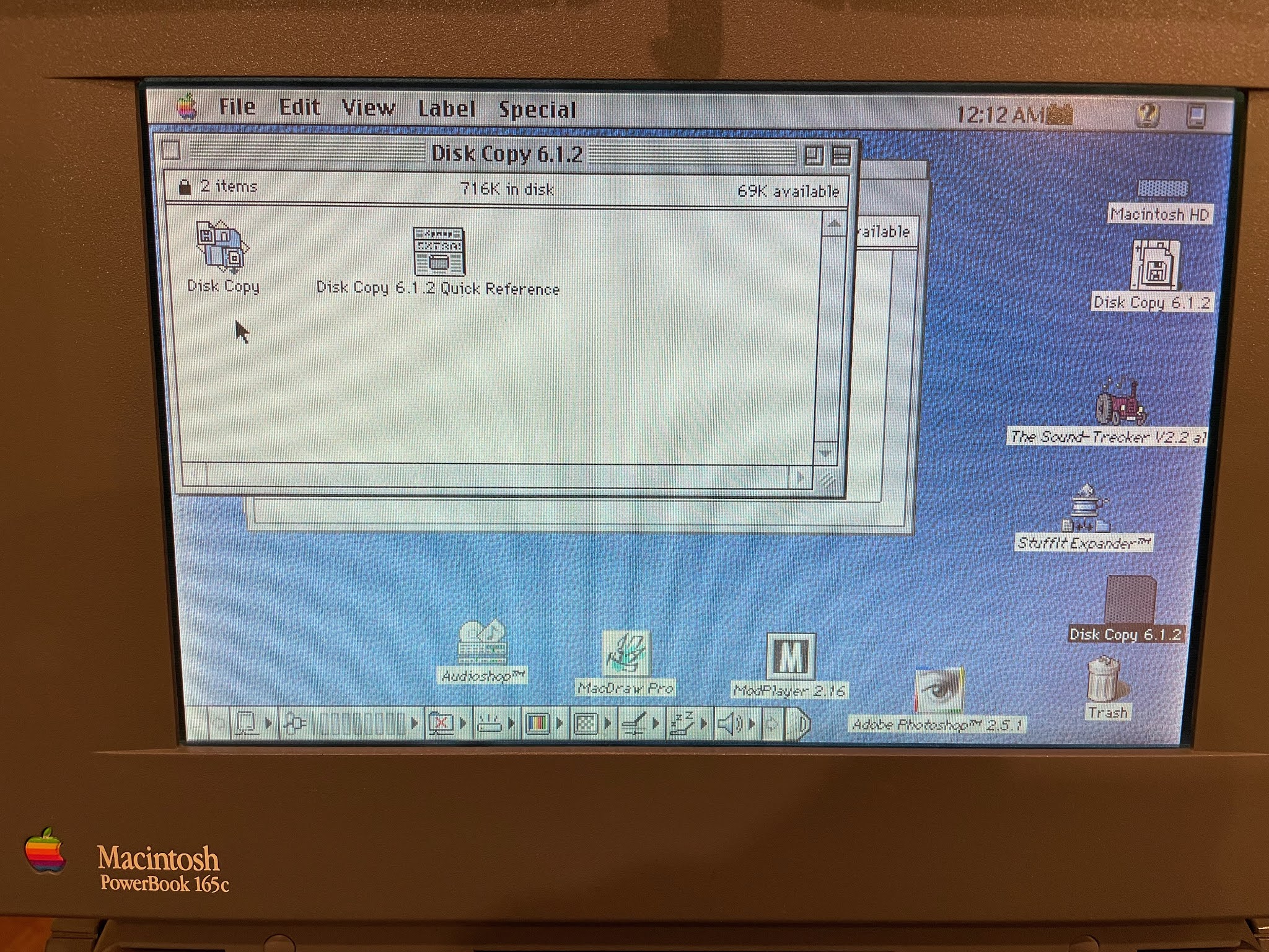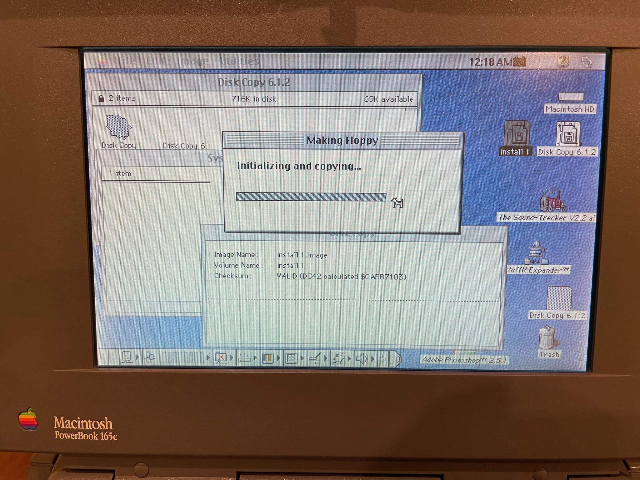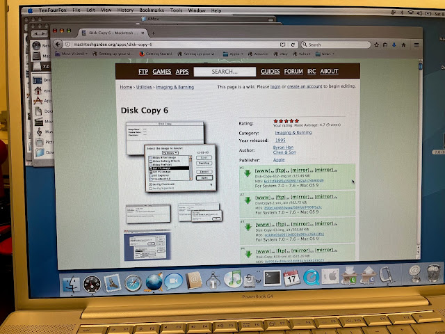 I downloaded some software called Disk Copy 6 via the Powerbook G4. This software is used to write out Mac floppy disk images to disk, and this version runs on my Powerbook 165c: