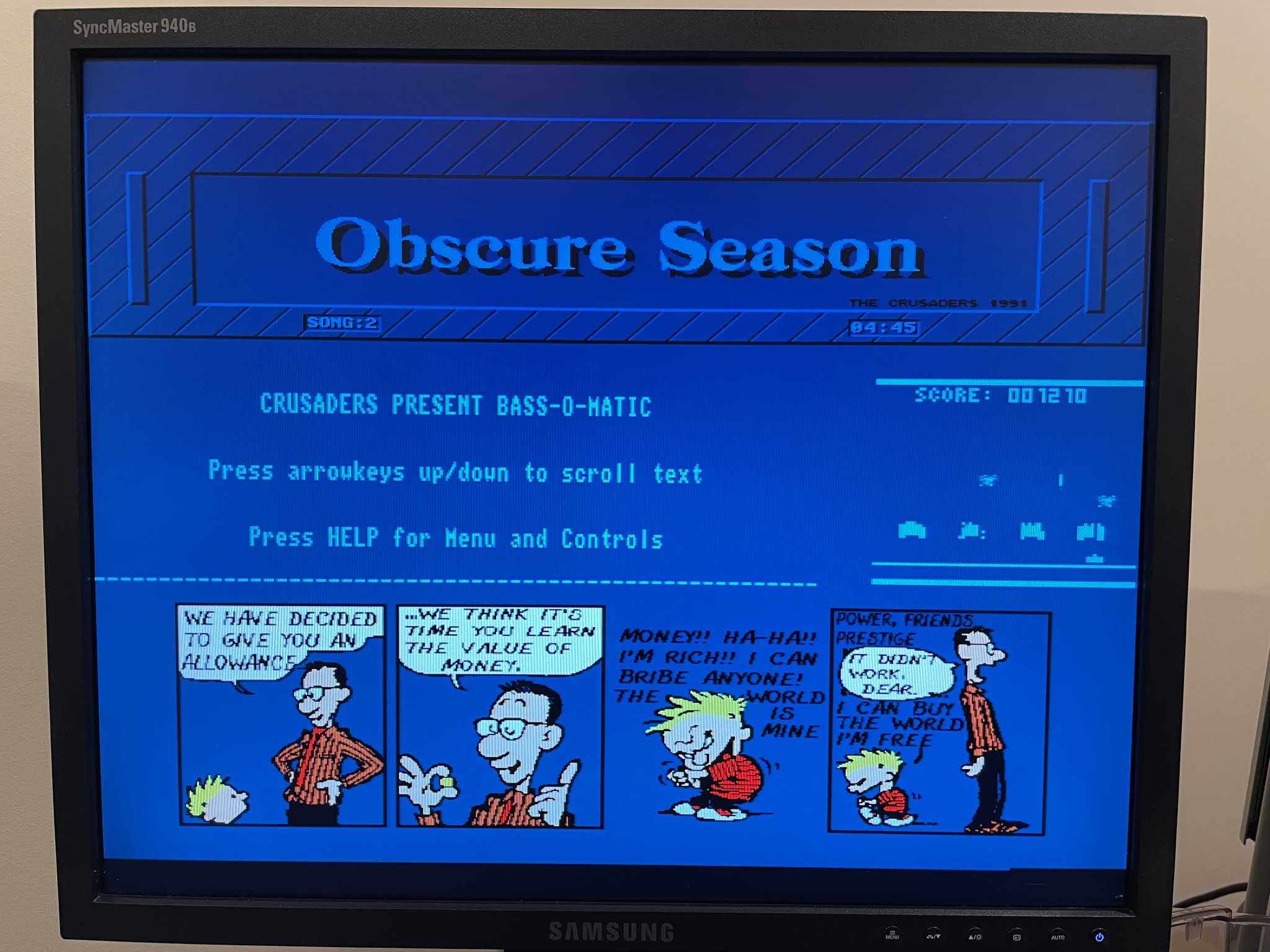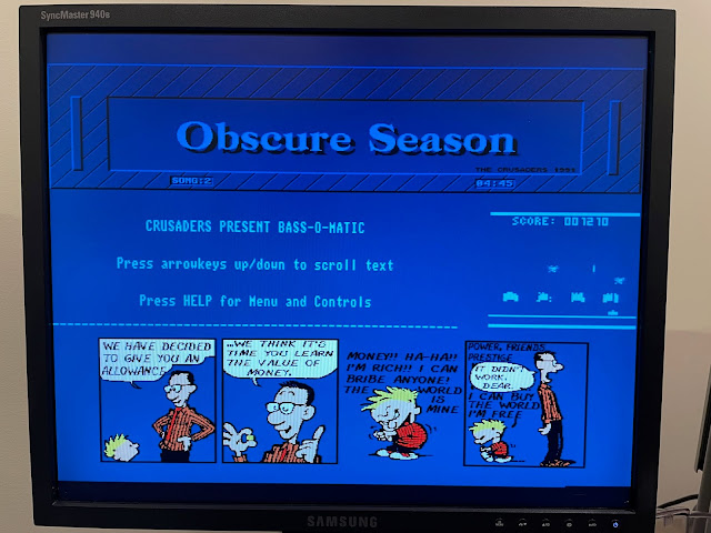 While enjoying the demo tunes you can read some Calvin and Hobbes comics and play a Space invaders game too :-)