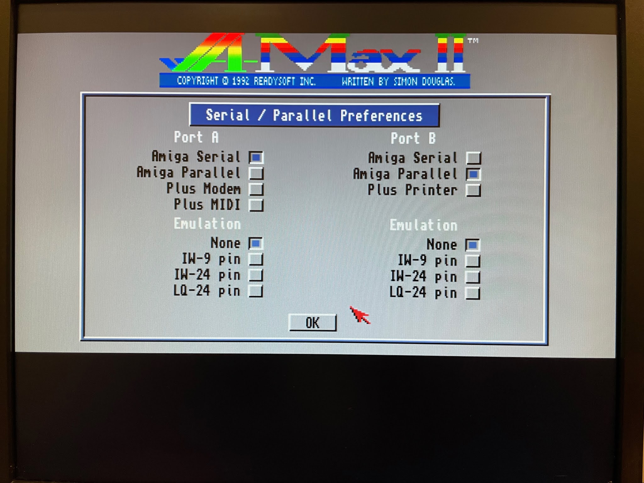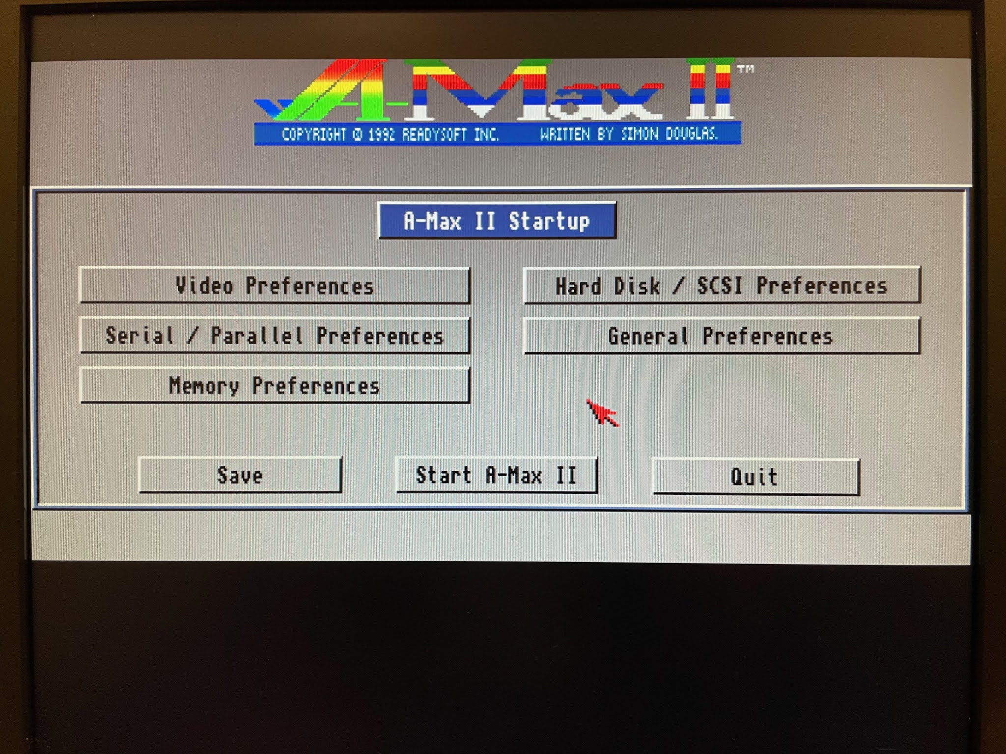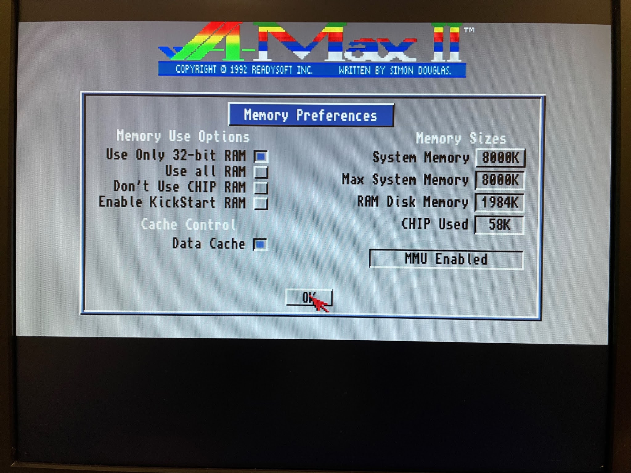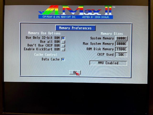 You can also set the memory options. The Amax software doesn't play nice with AmigaOS 3.1.4, so when you finish using it, you have to reboot. So don't sweat making sure AmigaOS has memory available also.