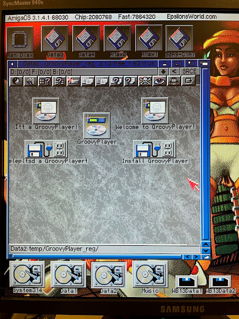 I next installed the CD File system drivers from AmiNet (AmiCDROM 1.5) and also GroovyPlayer, which I plan to use to play CD's on the Amiga 3000 under OS 3.1.4: