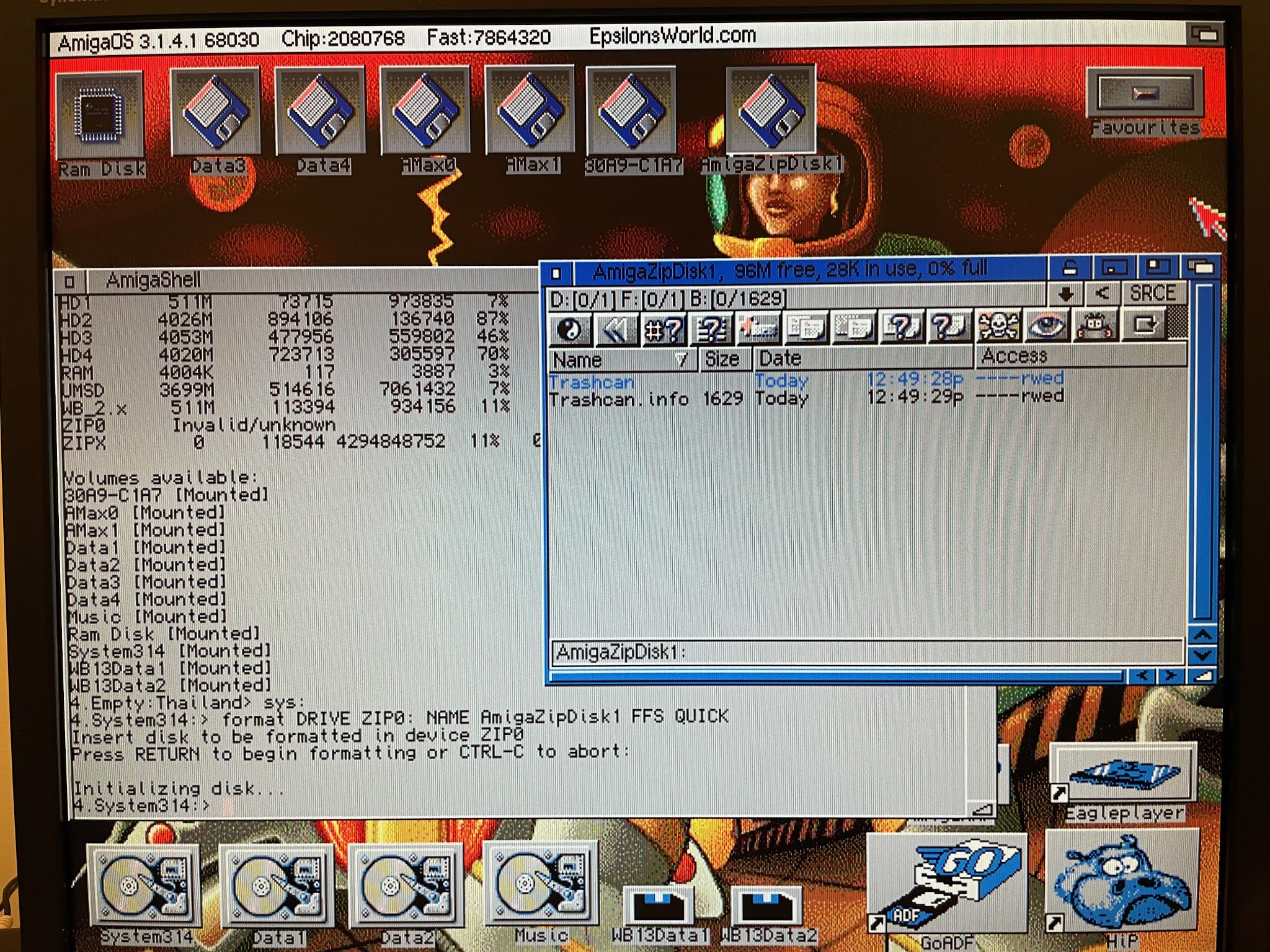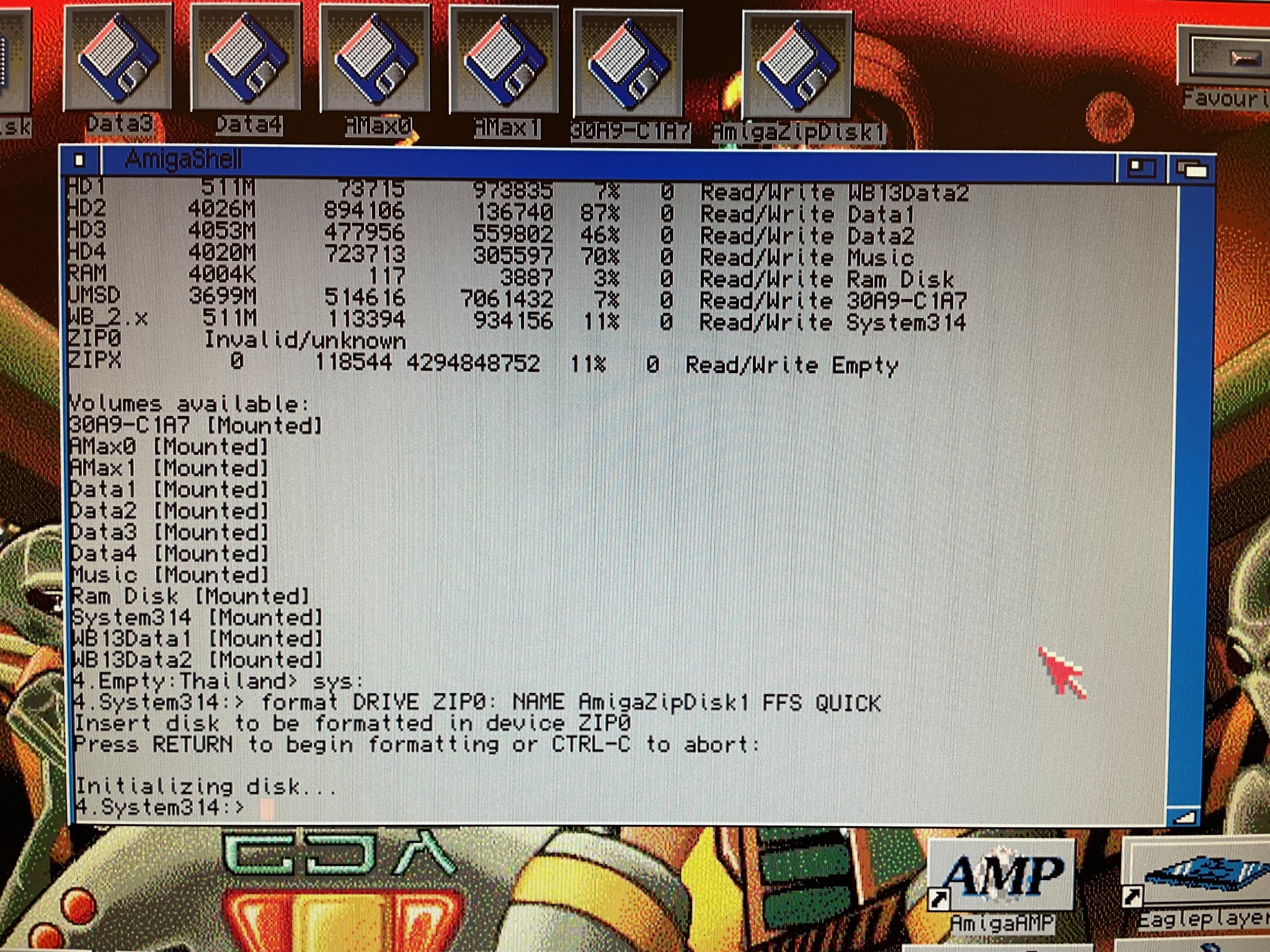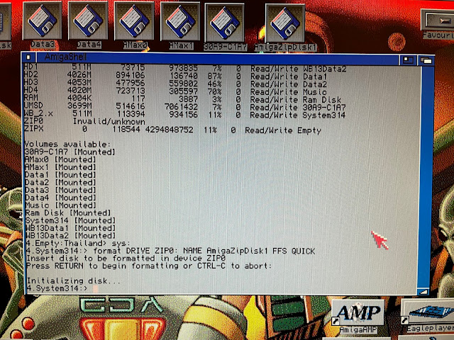 Anyway, I couldn't care less about their data, so I formatted the zip disk as an Amiga formatted disk as below: