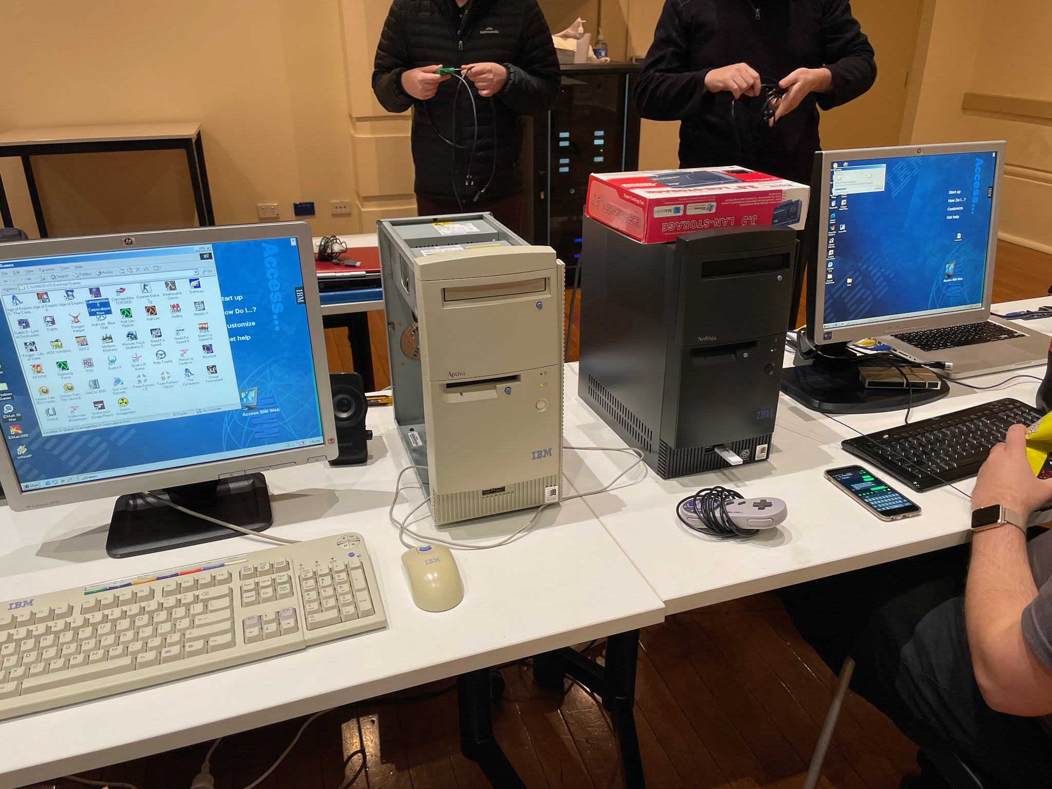 Here are some black and white (creme) IBM PC's from the late 1990's. I have a IBM 300 Pentium 200MMX PC at home I use for DOS PC demos and to run OS/2 Warp 4. Little bit more interesting I think than just running Windows 2000 like the ones below. YMMV :-)