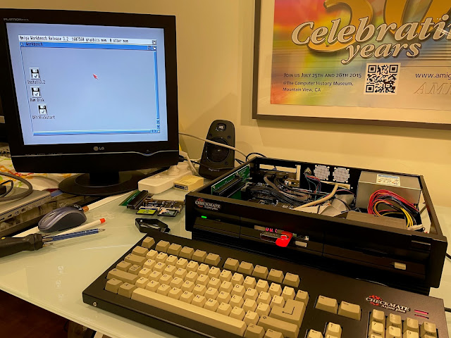 Here is the system internals of the Amiga 500 build. I opened the Checkmate A1500 plus case below to start work on the PiStorm upgrade: