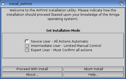 After hitting proceed it launched the Printer prefs, and I followed the instructions to select the AirPrint printer driver, and selected the AirPrint.device from the dh0:devs drawer from the folder icon next to the Port device section: