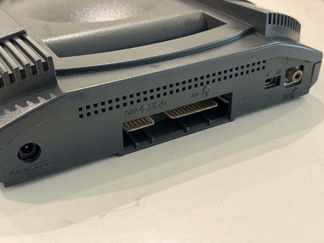 Especially expensive is the Jaguar CD add-on, released late in its life, which opened up being able to play Jaguar CD games on the system. There is a port on the back of the console used to connect it, and it sits on top of the Jaguar console, with a pass through for the cartridge port.