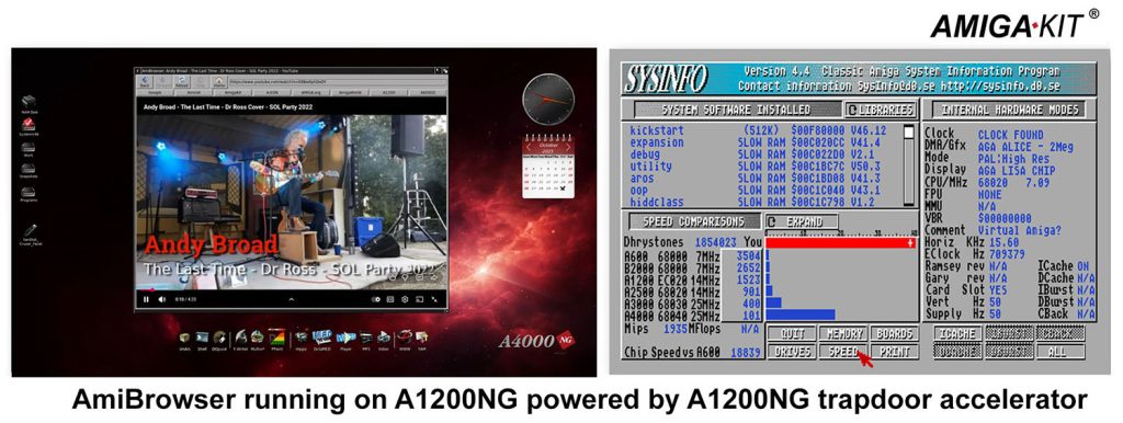 The A1200NG was already turning heads, but the new accelerator took it to a whole new level. Installed in the trapdoor slot, it pushed the machine to 1,935 MIPS, over 100 times faster than the original A4000. YouTube playback, heavy-duty browsing, even video rendering. It just flew. That wasn’t the only reveal. AmigaKit confirmed development of the A4000NG, based on the same architecture. It’s early days, but the direction is clear. The A600GS, A1200NG, and A4000NG form a clean, consistent lineage, modern internals, Amiga soul.