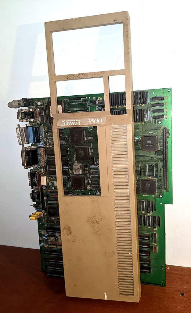 Darren attended what might have been the last World of Commodore show that same week, accompanied by his friend Yvonne and her two kids. Wandering the floor, he came across David Pleasance standing next to a towering mystery system with a sticker reading Commodore Amiga A3500. Darren had never heard of it.