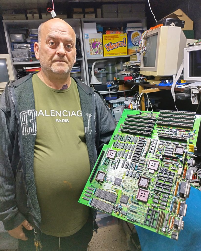 Then the council got involved, said the roof was asbestos and carted everything away for safe disposal. So I lost the case but thankfully, the board and facia are safe! The original A3500T case was lost, but miraculously, Darren saved the motherboard and fascia. The board is now being methodically restored by a fellow enthusiast named Alan.