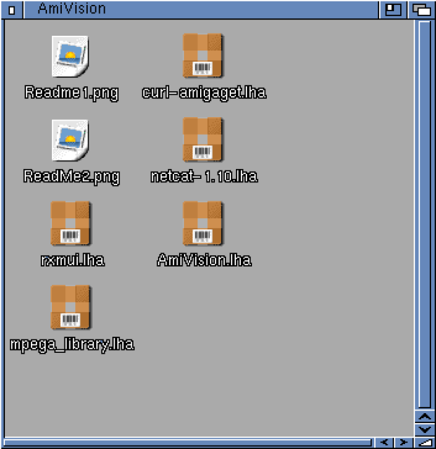 I moved to the Amiga 4000T and installed the AmiVision software, and the rxMUI, netcat, mpega, and curl pre-requisities, which were included in the lha.