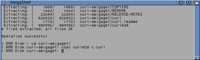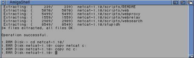 Anyway, let's move on to setup AmiVision on the Amiga 4000T. I set to work putting on all the pre-requisites (note that netcat and curl executables should be in the c: directory on the AmigaOS 3.2 system drive). I copied them using the AmigaShell: