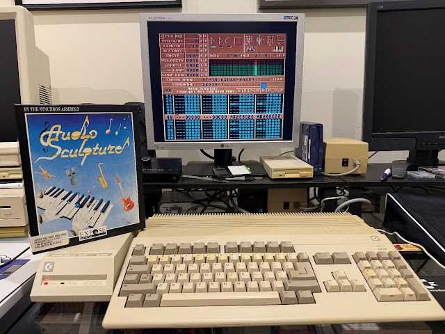 There were also many copycat commercial tracker software releases though, based on the soundtracker/protracker concept. One of these was Audio Sculpture. The interface is very similar - if it ain't broke, why fix it right?