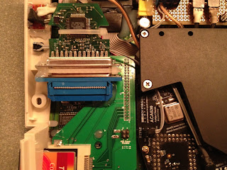 Since I'm not going to press this button frequently and since I don't want it to be visible I thought of putting it close to my Kickstart 1.3/3.1 switch. So a hole has been drilled...