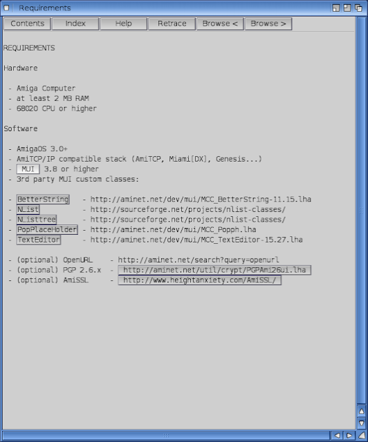 Note that SimpleMail requires a MUI class called PopPlaceHolder which is not included with AmigaOS 4.1 Final Edition or with the included 0.35 program or the 0.41 update! The other requirements (MUI classes) have links shown in the Requirements guide below.