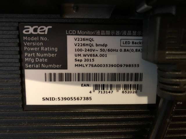 The model I got is a V226HQL model, with the exact information taken from the screen for your reference if you want to get one yourself. Even though I bought this new in it's original box, it is a few years old. I have seen others on Facebook using ones made in early 2017 that work also: